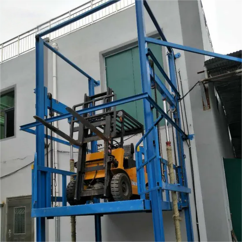 The guide rail cargo lift is a non-scissor-type hydraulic lift designed for vertical goods transportation between floors. It operates using a combination of guide rails, chains, and hydraulic cylinders to provide smooth, safe, and efficient lifting. With a compact structure and minimal space requirements, this lift is ideal for industrial facilities, warehouses, mezzanines, and logistics centers where frequent cargo movement is required.
